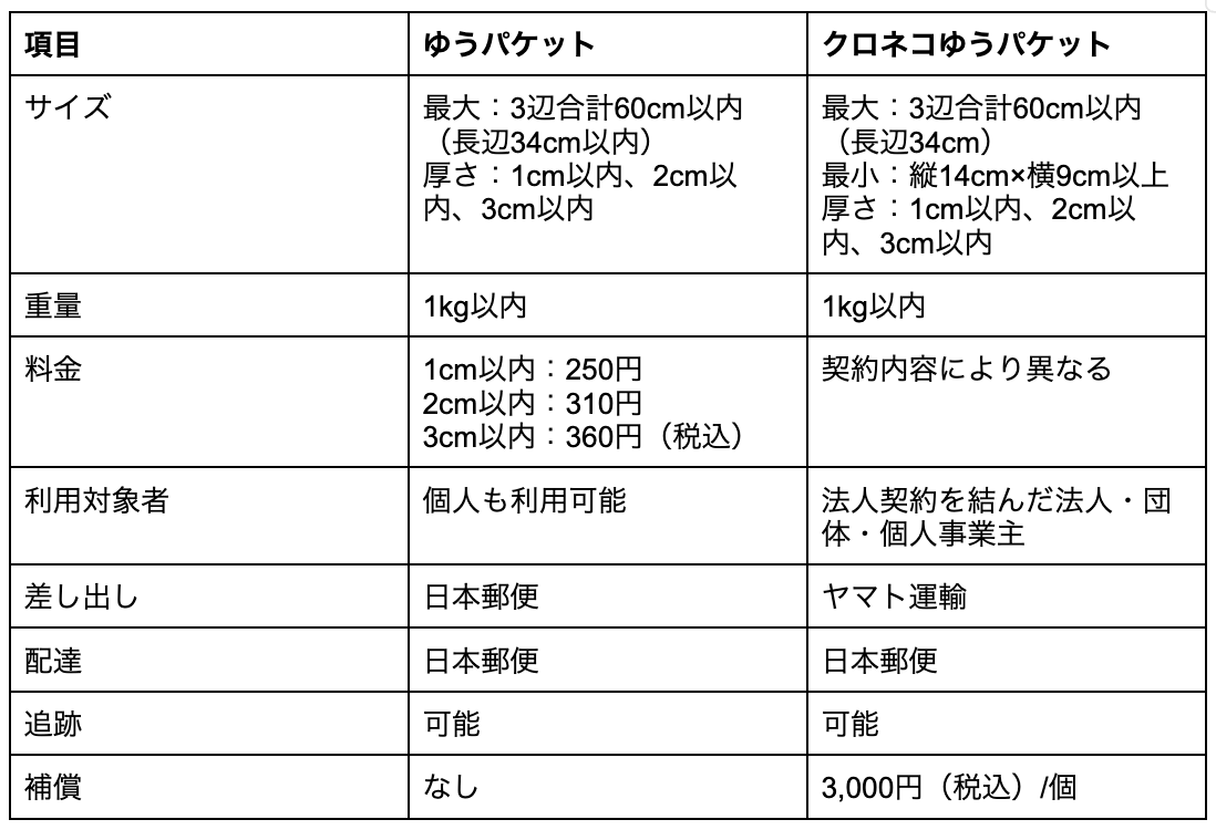 ゆうパケットは個人も利用可能で、郵便ポストに投函できる点がクロネコゆうパケットとの主な違いとなっています。